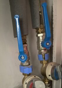 I hver lejlighed forefindes stophaner for varmeinstallationen.